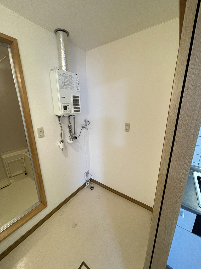 | 設備 | 給湯、BT別、シャワー、脱衣所、洗面所独立、シャワー付洗面化粧台、温水洗浄便座、フローリング、照明付、ペアガラス、クロゼット、下駄箱、物置、TVモニタ付ドアホン、地上デジタル、BS、システムK、灯油FF、ボイラー、室内洗濯機置場、ガスコンロ二口設置済み | ||