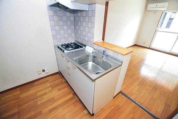 | 設備 | 給湯、BT別、シャワー、バルコニー、フローリング、駐輪場、インターネット接続可、CATV、システムK、カウンタK、外壁タイル、[管理員区分]巡回、インターネット無料、エアコン、室内洗濯機置場、ガスコンロ二口設置済み | ||