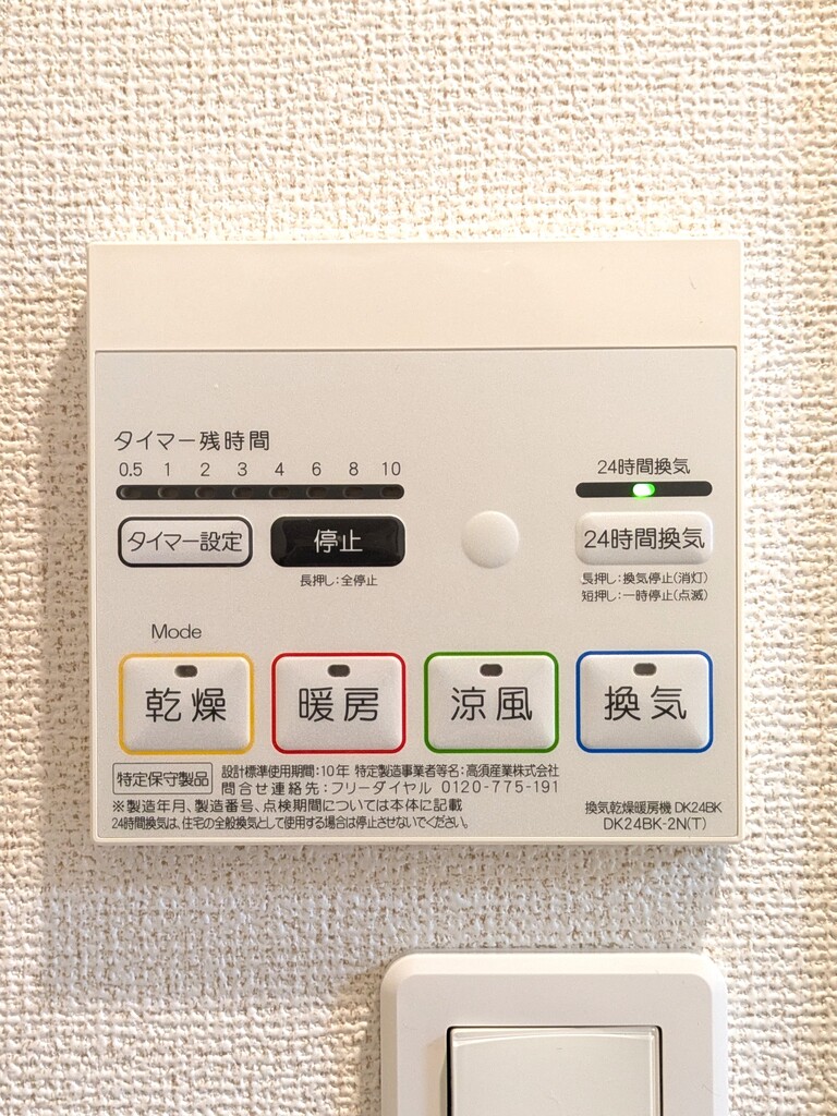 | 設備 | 給湯、BT別、シャワー、追焚、浴室乾燥機、洗面所独立、シャワー付洗面化粧台、温水洗浄便座、暖房便座、角部屋、バルコニー、フローリング、照明付、24時間換気システム、クロゼット、下駄箱、TVモニタ付ドアホン、ゴミ置場、駐輪場、BS、24h管理、防犯カメラ、2×4工法、浄水器、室内物干機、エアコン、室内洗濯機置場 | ||