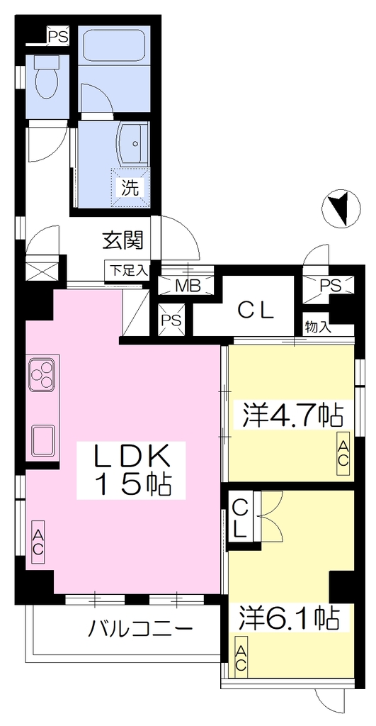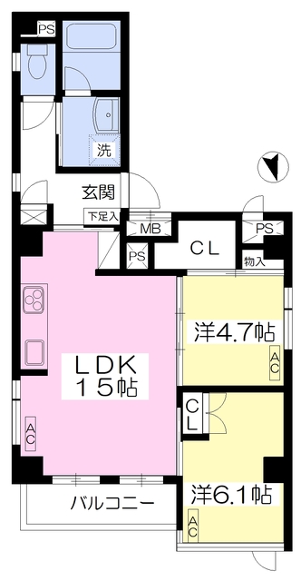| 2LDK/61.93m2 | 2014年12月 | 北 | 無/無 |