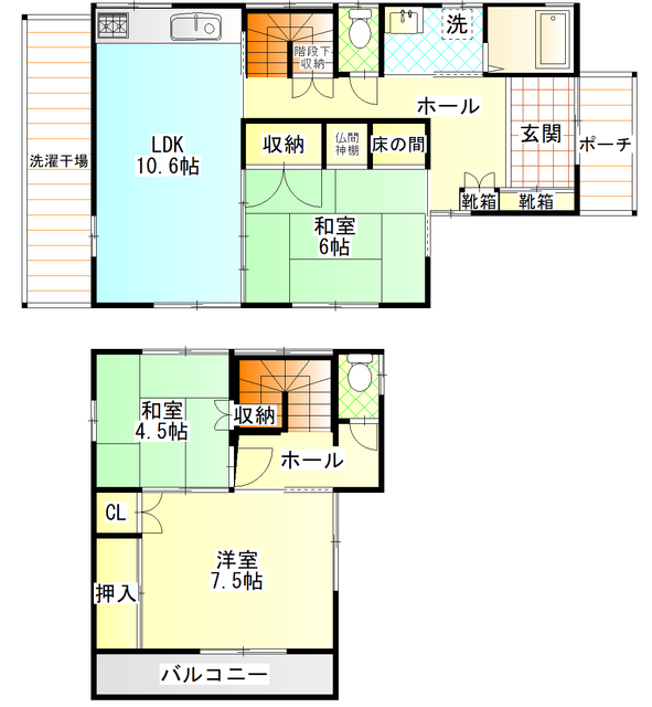 | 設備 | 給湯、BT別、シャワー、洗面所独立、シャワー付洗面化粧台、温水洗浄便座、暖房便座、3面採光、バルコニー、専用庭、キッチンに窓、浴室に窓、洗面所に窓、照明付、玄関ホール、玄関ポーチ、収納、クロゼット、押入、階段下収納、TVモニタ付ドアホン、システムK、エアコン、室内洗濯機置場、ガスコンロ二口設置可 | ||