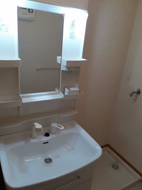 | 設備 | 給湯、BT別、シャワー、追焚、浴室乾燥機、洗面所独立、シャワー付洗面化粧台、暖房便座、最上階、角部屋、バルコニー、フローリング、24時間換気システム、下駄箱、全室収納、TVモニタ付ドアホン、ゴミ置場、駐輪場、BS、CATV、24h管理、カウンタK、2×4工法、オートバス、浄水器、エアコン、室内洗濯機置場 | ||