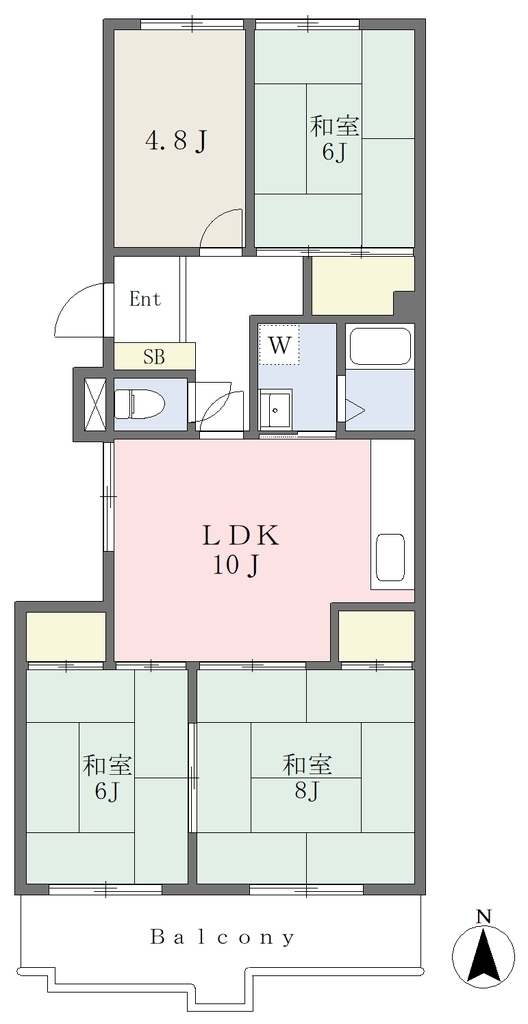 | 設備 | 給湯、BT別、シャワー、脱衣所、洗面所独立、シャワー付洗面化粧台、温水洗浄便座、3点給湯、バルコニー、クッションフロア、クロゼット、押入、下駄箱、TVモニタ付ドアホン、駐輪場、インターネット接続可、地上デジタル、24h管理、当社管理物件、エアコン、都市ガス、室内洗濯機置場、ガスコンロ設置可 | ||