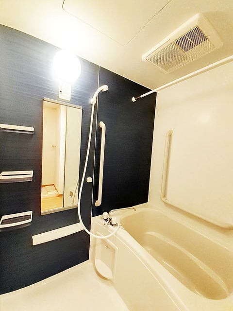 | 設備 | 給湯、BT別、シャワー、浴室乾燥機、洗面所独立、洗面化粧台、温水洗浄便座、暖房便座、最上階、角部屋、バルコニー、照明付、24時間換気システム、下駄箱、全室収納、TVモニタ付ドアホン、宅配ボックス、ゴミ置場、駐輪場、インターネット接続可、BS、CATV、24h管理、防犯カメラ、カウンタK、2×4工法、浄水器、エアコン、都市ガス、室内洗濯機置場 | ||