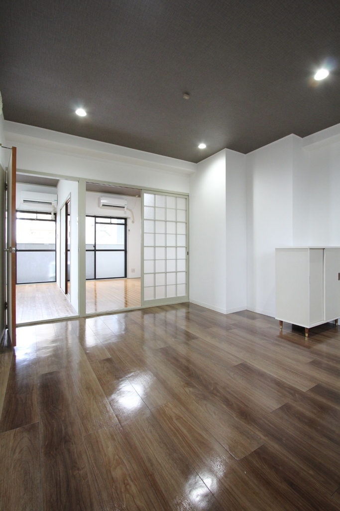 | 設備 | 給湯、BT別、シャワー、脱衣所、洗面所独立、洗面台、温水洗浄便座、3点給湯、1フロア2住戸、角部屋、バルコニー、南面2室、キッチンに窓、収納、下駄箱、TVモニタ付ドアホン、駐輪場、インターネット接続可、CATV、24h管理、当社管理物件、エアコン、室外洗濯機置場、ガスコンロ設置可 | ||