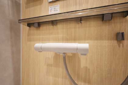 温調ハンドルで温度を設定すれば、お湯が熱くなったり冷たくなったりせず、安定した温度のお湯が得られます。
