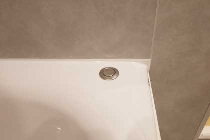 浴槽に手を入れずに、浴槽の縁の排水栓を一押しするだけで排水できます。