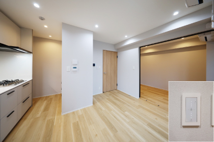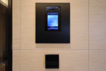 オートロックは、非接触キーを採用。操作盤のリーダーにキーをかざすだけで解鍵できるので、お子様連れや荷物を持っている際にも便利です。