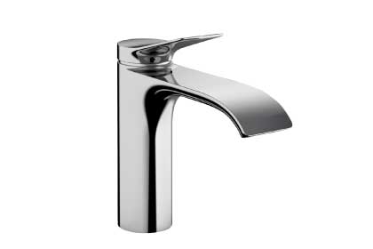 クローム仕上げのシャープなデザインが美しい、ドイツ、ハンスグローエ社製水栓を採用しました。